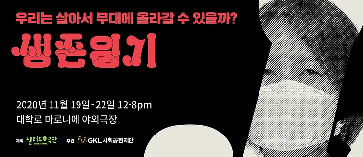 안녕하세요.다국적 이주민 예술가들로 구성된 샐러드 극단에서 팬데믹 시대 예술의 길을 묻는 다원예술 공연 '생존일기' 에 참여할 시민 퍼포머를 모집합니다. 마스크 착용으로 지친 일상을 샐러드 극단의 공연을 통해 힐링하시기 바랍니다. 다음의 퍼포먼스에 시민 퍼포머를 모집하고 있으니, 코로나 블루로 힘드신 시민분들의 참여를 기대합니다. 청명한 가을, 공연예술로 즐겁고 의미 있는 시간도 갖고 퍼포먼스 참여로 즐거운 추억도 만드세요! 샐러드 극단 드림