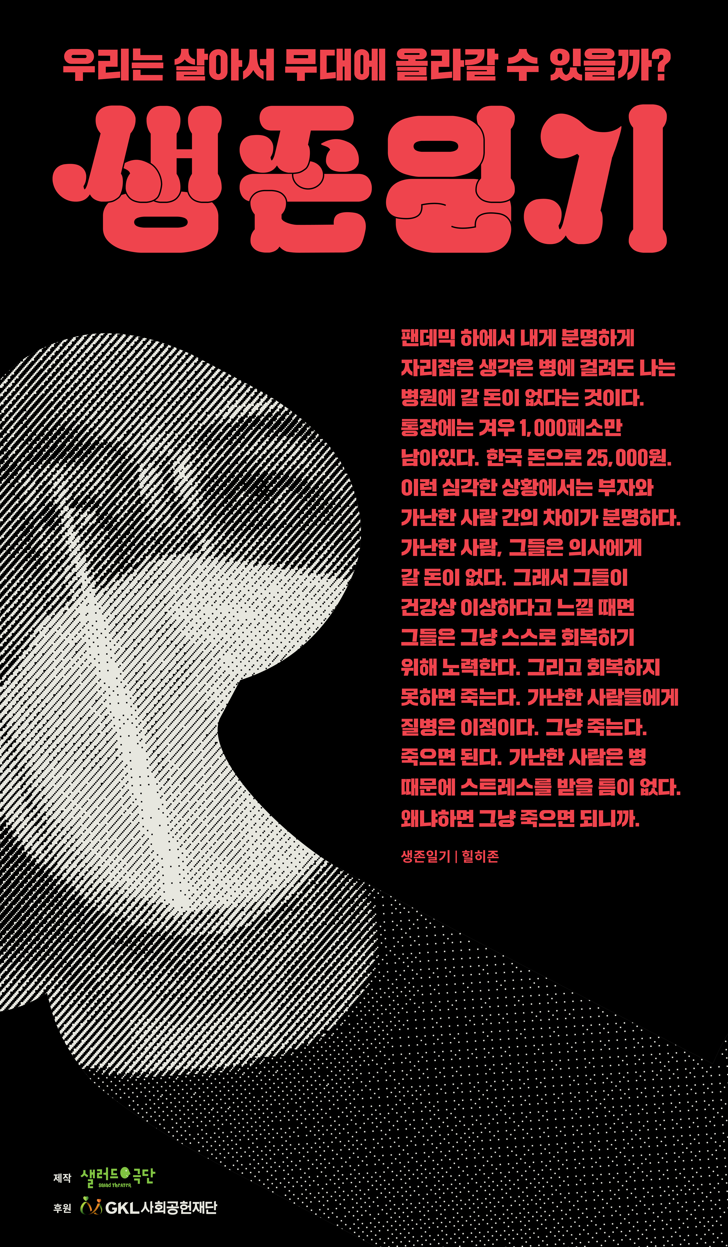 오는 11월 21일 오후 6시 샐러드 극단은 이러한 상황을 담은 라이브 스트리밍 다원예술 공연 ‘생존일기’를 무대에 올린다.