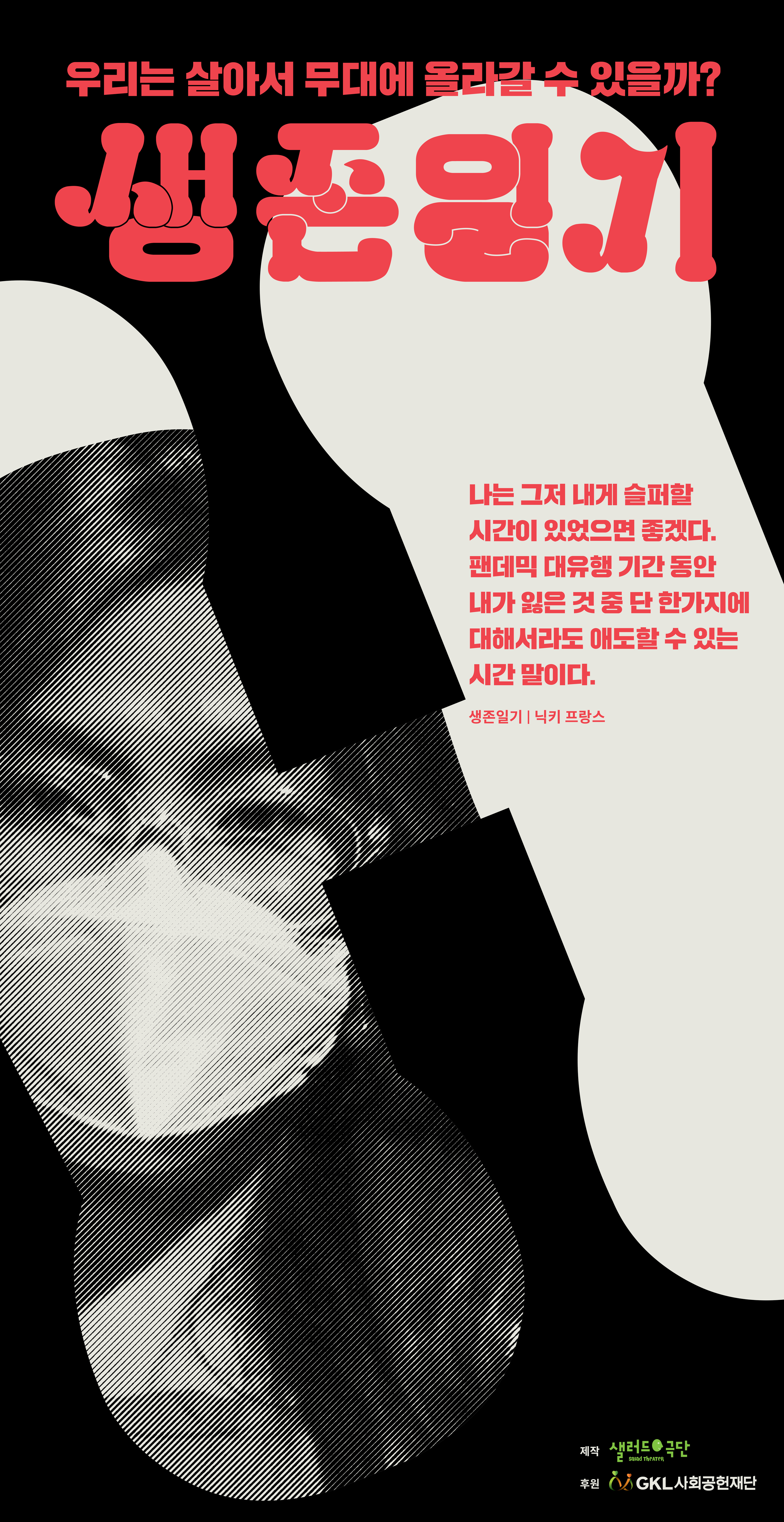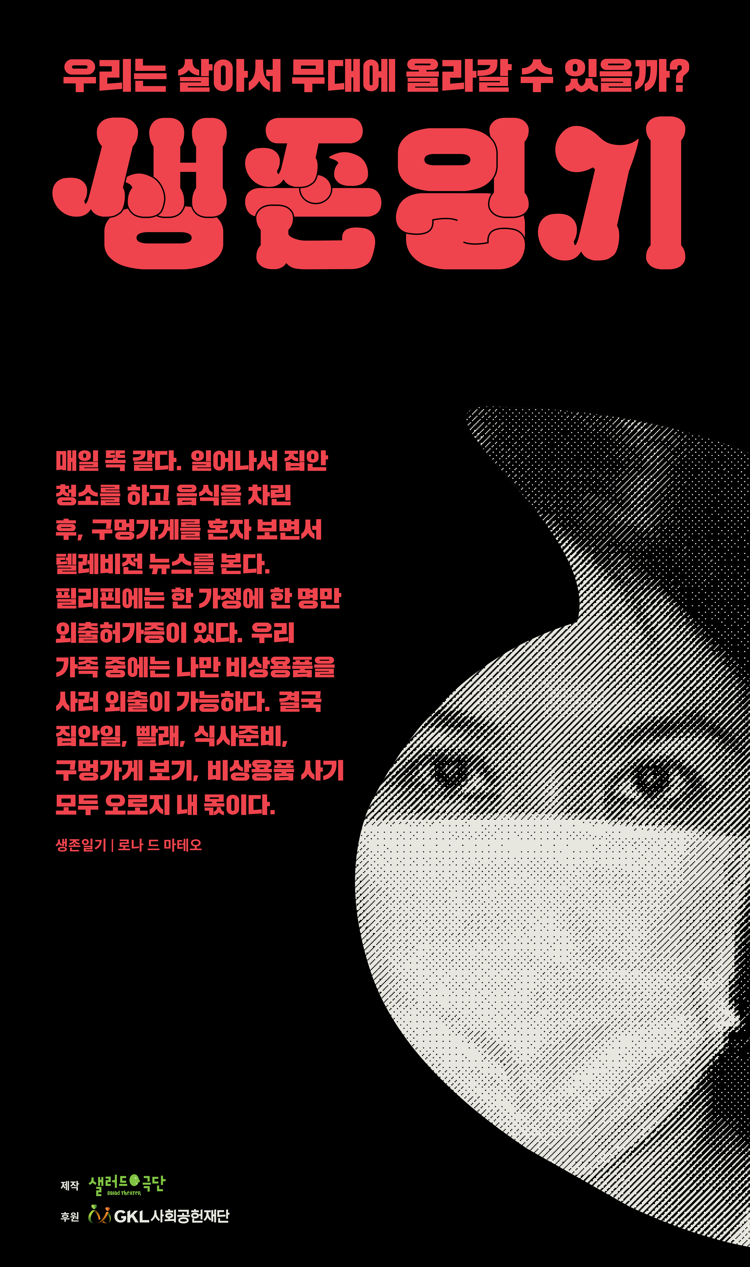 마스크 없이 살 수 없는 새로운 일상의 시대를 살아가는 예술계의 현실을 조명하고 격리생활로 흩어진 극단 샐러드 단원들의 안부를 확인하기 위해 새로운 공연을 기획했다. “우리는 끝까지 살아남을 수 있을까?”, “우리는 살아서 무대에 올라 갈 수 있을까?”, 극단 샐러드 단원의 작은 바램을 작품에 담았다.
