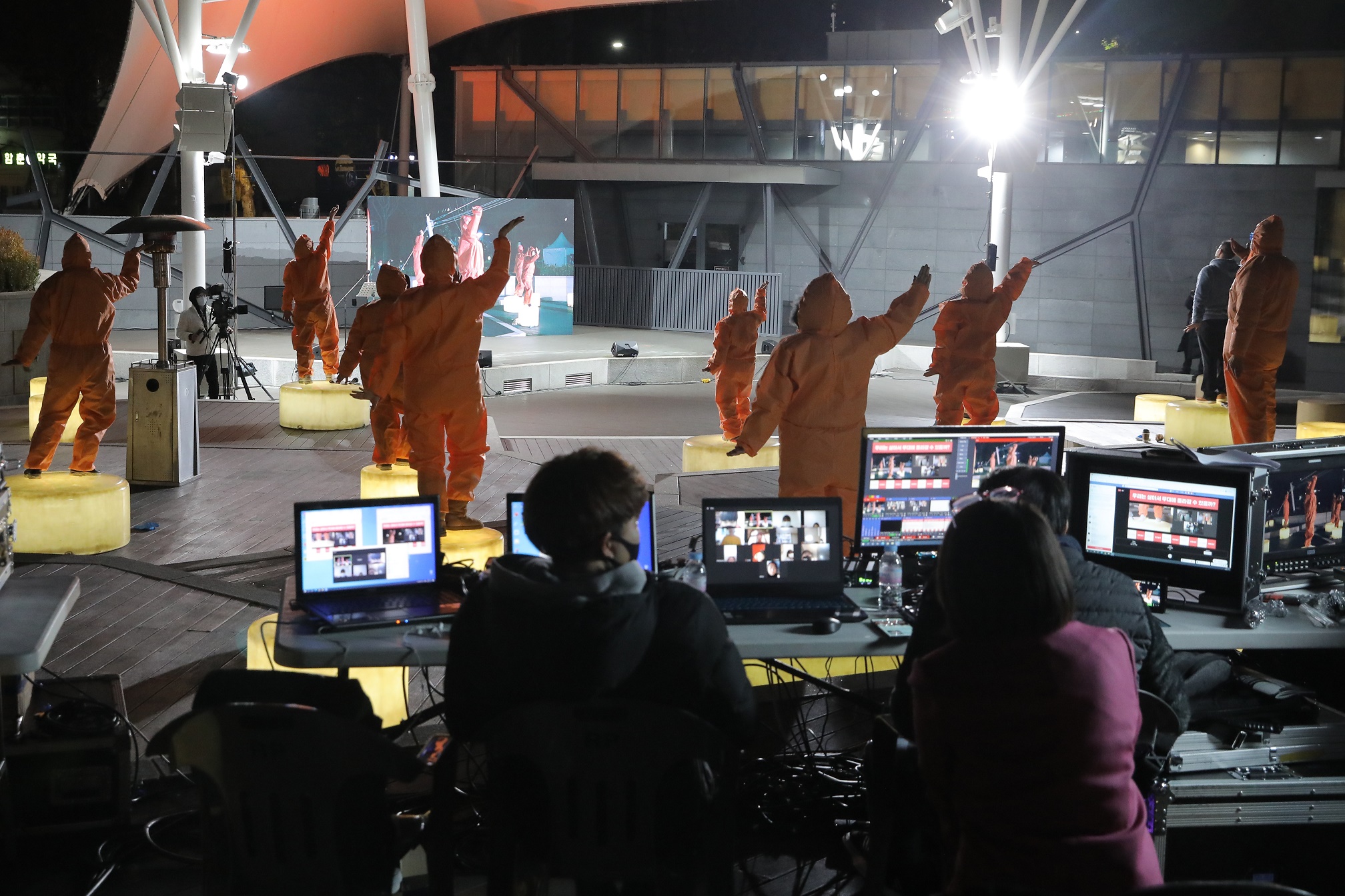 특히 지난 21일 토요일에는 대학로 마로니에 야외공연장을 방송 스튜디오로 변신시킨 후에, 박 연출이 직접 사회를 보며 필리핀에 체류 중인 단원 힐 히존과 로나 드 마테오 그리고 몽골에 체류 중인 사랑게렐 수흐바타를 줌으로 연결하며 샐러드 극단 유튜브 채널로 실시간 공연했다.